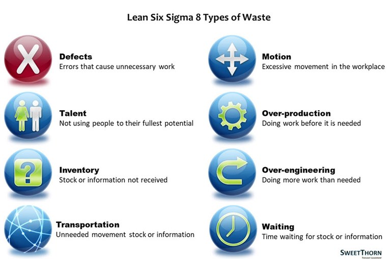 The diagram below serves as a reminder of the 8 Wastes of Lean (a trusted approach to identifying supply chain improvements and cost).